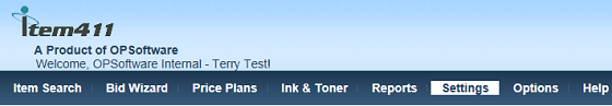 Custom Settings can be accessed through the 'Settings' link of the main menu on every page once logged in.